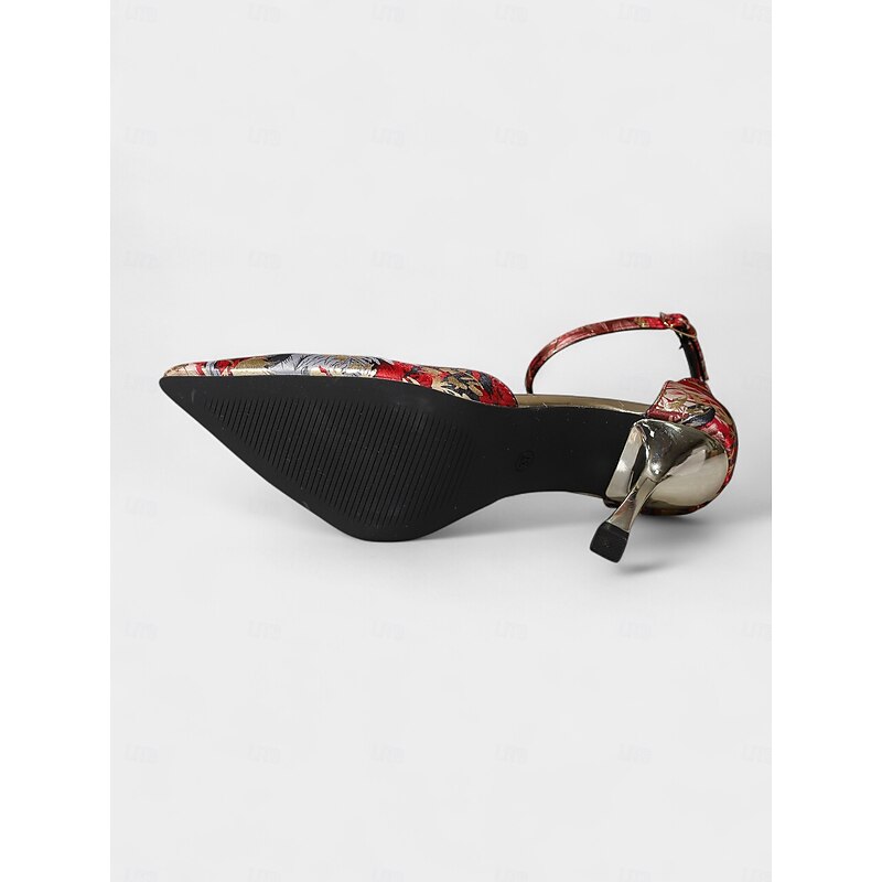 Women's Blue Floral Brocade Pointed Toe High Heels – Elegant Ankle Strap Stiletto Pumps for Daily, Evening Party & Formal Events 10