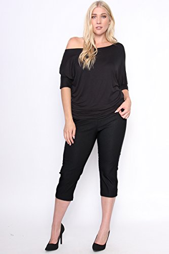 HOT ! TheMogan Women's Slit Pocket Mid Rise Stretch Capri Trousers Plus Cropped Pants