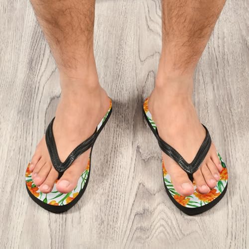 Sinestour Flower Orange Leaf Flip Flops for Beach Thong Sandals Anti-slip Lightweight Flat Slippers for Indoor Outdoor House 7