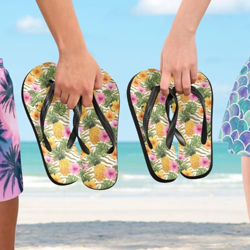 ALAZA Pineapple Tropical Flower Flip Flops for Women Fashion Beach Slippers Comfort Mens Flip Flops Non-Slip Rubber Shower Slippers Sandal for Hotel Travel Sport,XS 1
