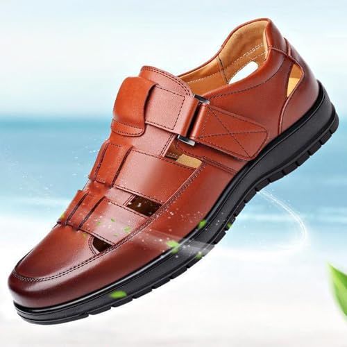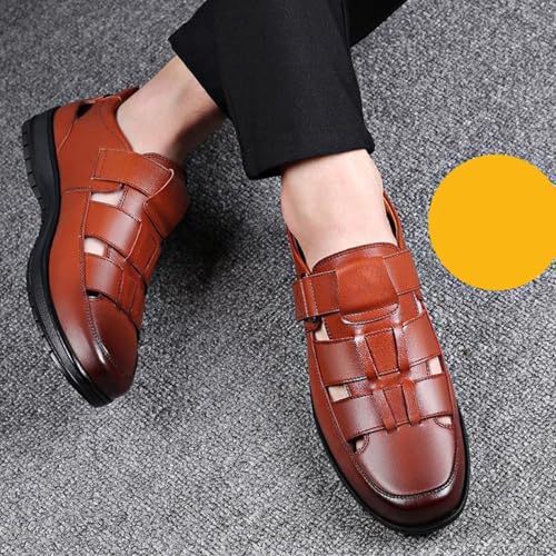 Men's Summer Working Business Leather Sandals Wide Width Slip On Walking Sandals Fisherman Dress Synthetic Office Breathable Oxfords 6