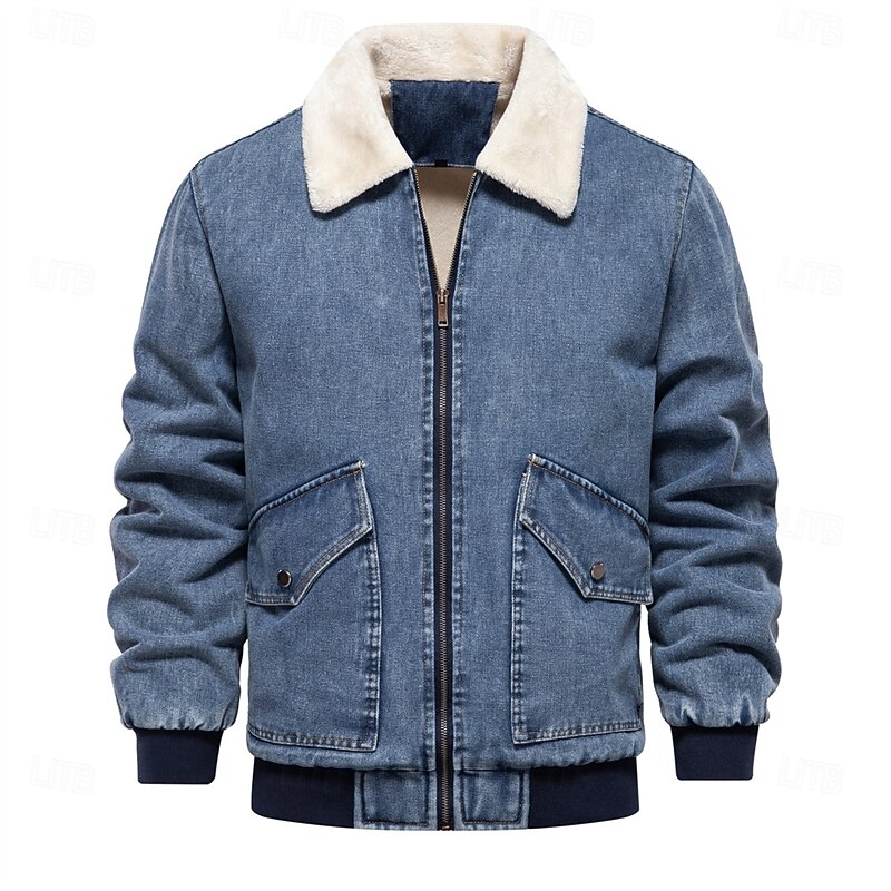 Highlights [Fabric and Fit] : Crafted from a durable blend of 70% cotton and 30% polyester, this men's denim jacket is perfect for fall and winter. The jacket features a regular fit, ensuring comfort and a timeless appeal suitable for casual daily wear. With long sleeves and ribbed cuffs, it offers a snug fit that retains warmth. [Design Highlights] : This versatile jacket boasts a color block pattern in dark gray, dark blue, and light blue, enhancing its modern appeal. Designed with a practical zip-up front and two large flap pockets with button closures, it combines style and functionality. The plush, faux fur-lined interior and thick collar ensure warmth and add a touch of luxury. [Occasions] : Suitable for casual and daily occasions, this jacket seamlessly adapts to various settings. Whether you're heading out for a relaxed day or need an extra layer for chilly weather, its blend of comfort and style makes it an essential piece for the cooler seasons. [Size and Range] : Available in a range of sizes from S to XXL, this jacket is designed to accommodate various body types, offering ample options to find the perfect fit. With its classic lapel neckline and denim construction, this jacket is a must-have addition to any wardrobe capable of enduring the test of time.