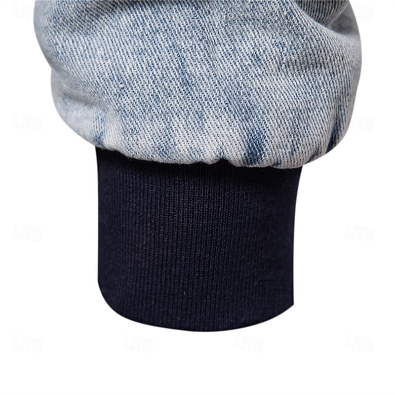 More information about Men's Fleece Jacket Jean Jacket Denim Jacket Casual Daily Fall & Winter Color Block Casual Lapel Regular Dark Gray Dark Blue Light Blue Jacket
