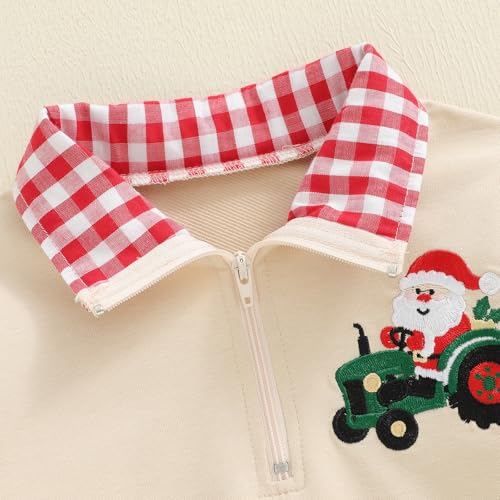 Toddler Boys Christmas Clothes Long Sleeve Santa/Christmas Tree Embroidery Sweatshirt Plaid Collared Zipper Shirt 7