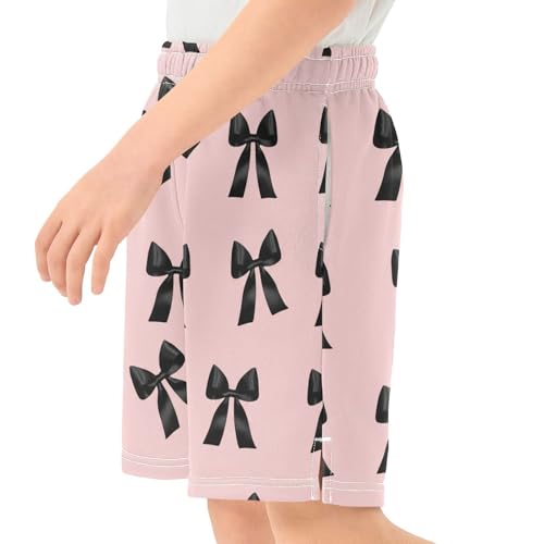 Black Bows Athletic Shorts with Zipper Pockets, Youth Boys Athletic Running Shorts for Summer 2