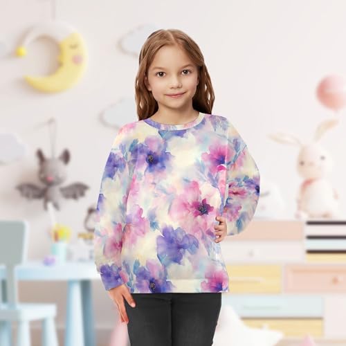 JUNZAN Watercolor Spring Flowers Flores Kids Girls Hoodie Sweatshirt Crewneck Kids Hoodies Boys Athletic 4T 5