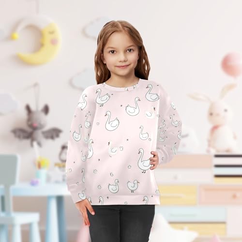 JUNZAN Cute Swan Goose Pink Little Kids Sweatshirts Hoodies Fleece Fall Tops Shirts Athletic 4T 5