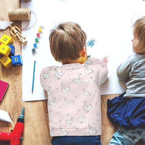 JUNZAN Cute Swan Goose Pink Little Kids Sweatshirts Hoodies Fleece Fall Tops Shirts Athletic 4T 2
