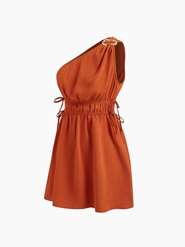 CIDER Summer Asymmetrical Neck Mini Dress Elastic Waist Buckle Knotted Lined Short Dresses Vacation Party 4