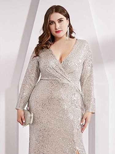 Ever-Pretty Women's Plus Size Long Sleeve Slit Sequin Maxi Evening Dresses 0824-PZUSA 4