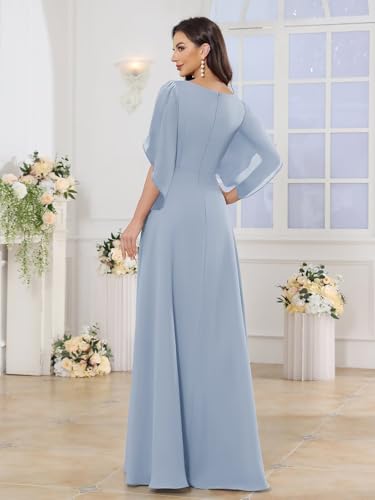 3/4 Sleeve Mother of The Bride Dresses for Women Lace Applique V Neck Pleated Formal Dress 4