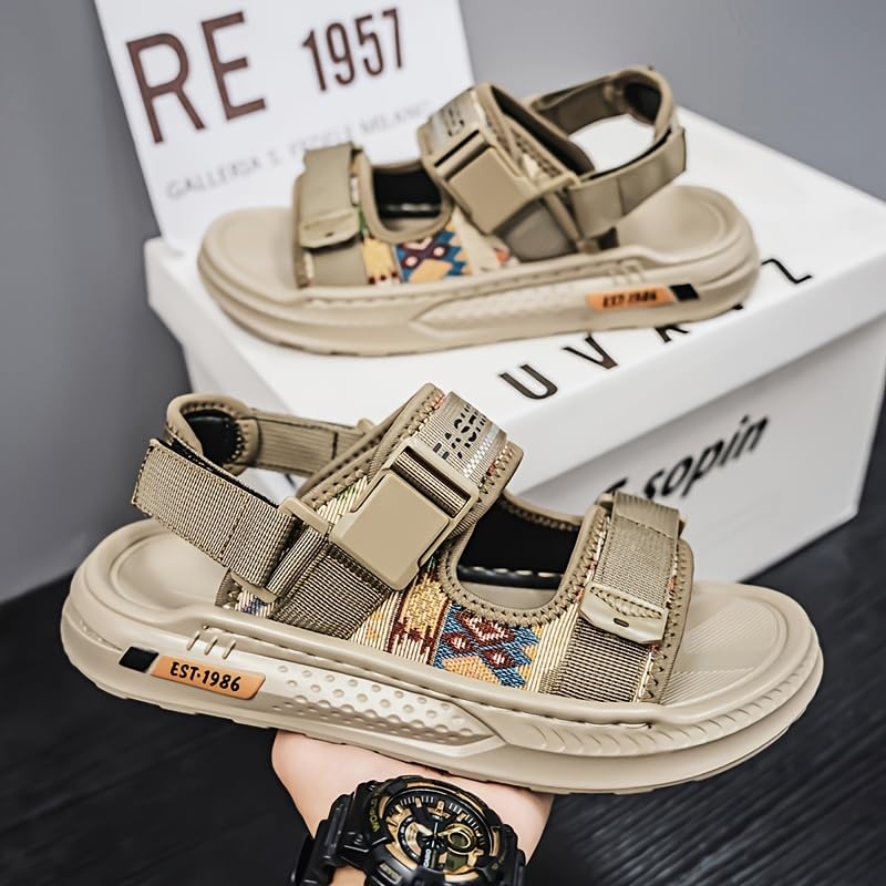 HOT ! Men's Slip-On Sandals with Soft Rubber Sole - Breathable PU Upper, All-Season Beach & Outdoor Shoes for Men Casual Comfort for Hiking, Camping, Vacation