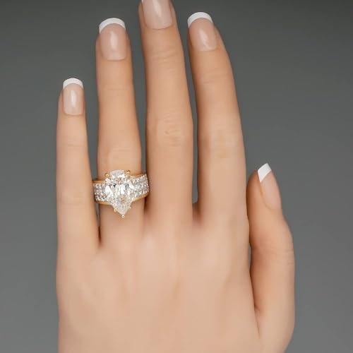 925 Sterling Silver Ladies Classic Elegant Pear Shape Diamond Ring 18K Rose Gold Plated Square Cut AAA Cubic Zirconia Ring Ladies 925 Engagement Wedding Ring Sizes 6-10 604 (8) 5