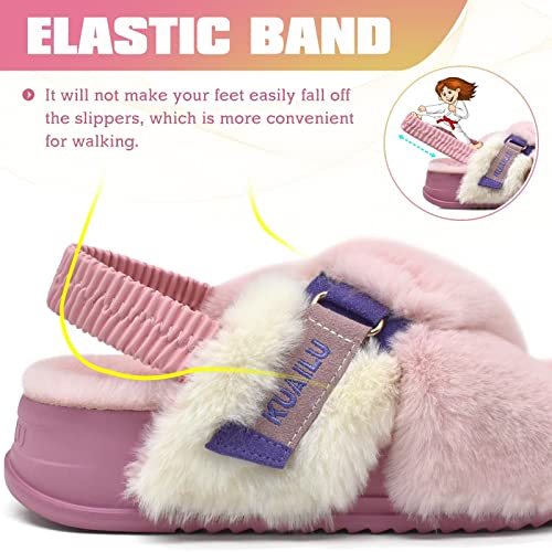 KuaiLu Womens Fuzzy Criss Cross Band Platform Slippers Arch Support Furry Faux Fur Ladies Open Toe Cozy Soft Plush Fleece Comfy House Shoes Sandals 3