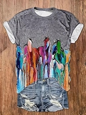 More information about Women's T Shirt Casual Horse Print Short Sleeve Regular Tops Crew Neck Daily Gray Summer