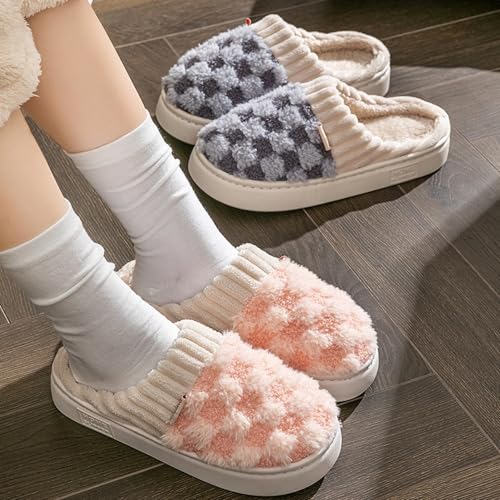 Fashion Checkered Home Slippers for Women Men Indoor Winter Warm Cozy Plush Cotton Plaid Slipper Fuzzy Bedroom Shoes Thickened Sole Slip On 5