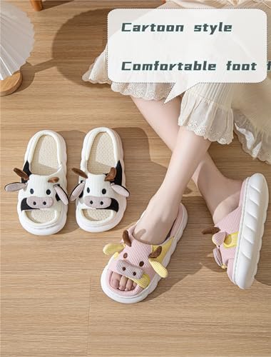 • Linen slippers are designed with lovely cows, suitable for women and men, and suitable for bedroom, bathroom, garden, spa, gym, swimming pool, beach, shopping plaza and other places.