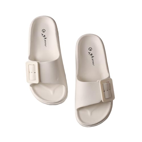 • 【Chic Aesthetic】Featuring a trendy buckle detail and thick sole design, these black slides blend fashion with modern style, perfect for elevating casual looks.