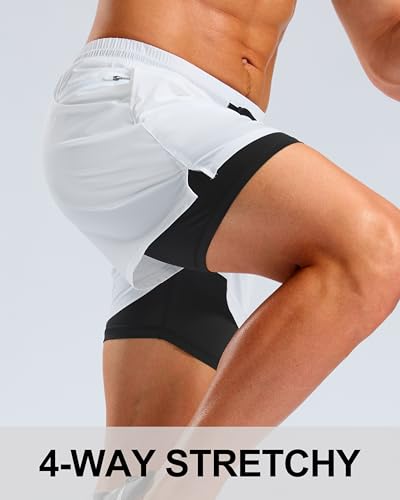 Pudolla Men's 2 in 1 Workout Running Shorts 5" Quick Dry Lined Gym Shorts Athletic with 4 Pockets for Men Tennis Training 5