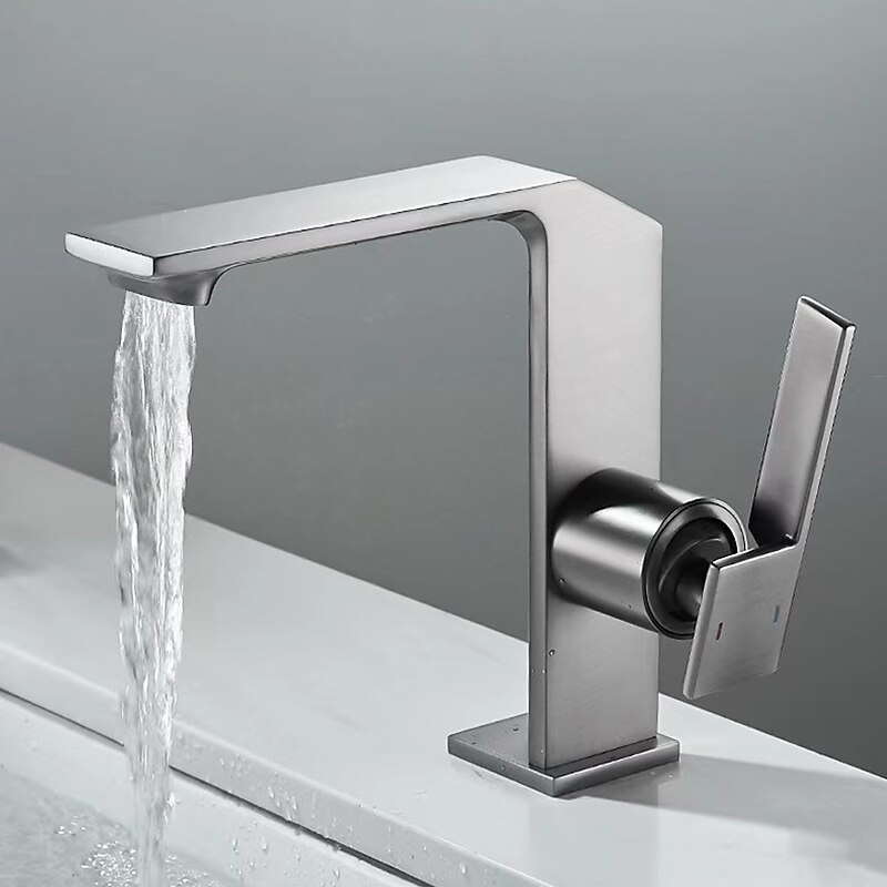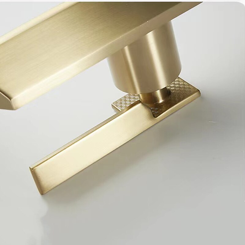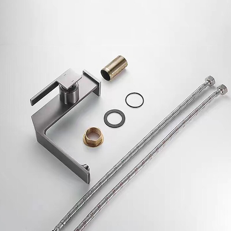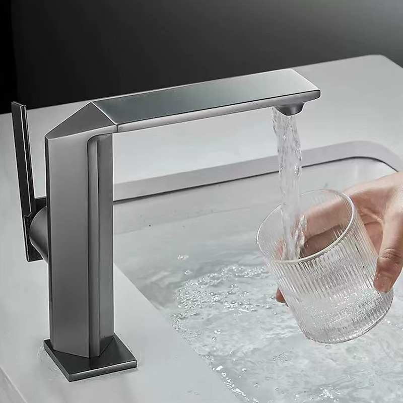 More information about Waterfall Bathroom Sink Mixer Faucet Brass, Single Handle Washroom Basin Taps One Hole Faucets with Hot and Cold Hose, Waterfall Spout Brass Bathroom Tap Chrome Black Gold Grey
