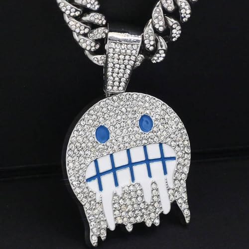 More information about EDINGM Smiley Pendant Miami Cuban Link Chain for Men, Gold/Silver Plated Diamond Necklace, Iced Out Hip Hop Jewelry Gift