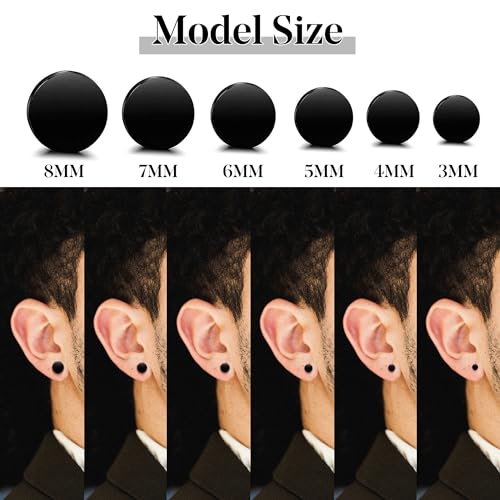 More information about FIBO STEEL 3 Pairs Stainless Steel Black Stud Earrings for Men Women Hypoallergenic Mens Earrings Stud Set, Black Silver Square Round Diamond CZ Studs Earring Pierced 3mm-8mm