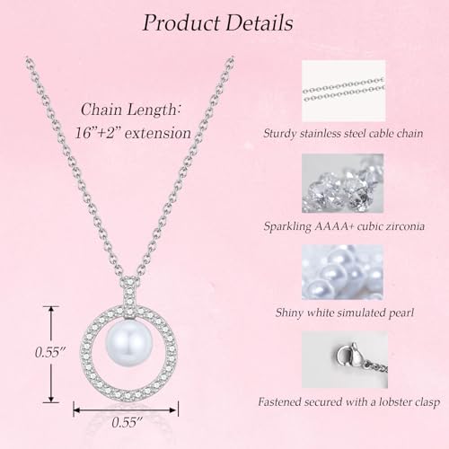 EPIRORA Birthday Gifts for Girls, 7th/8th/9th/10th/11th/12th/13th/14th/15th/16th/18th Bady Jewelery Presents Ideas for Daughter Granddaughter Sister Niece Friends, 16+2" Adjustable Pearl Necklace
