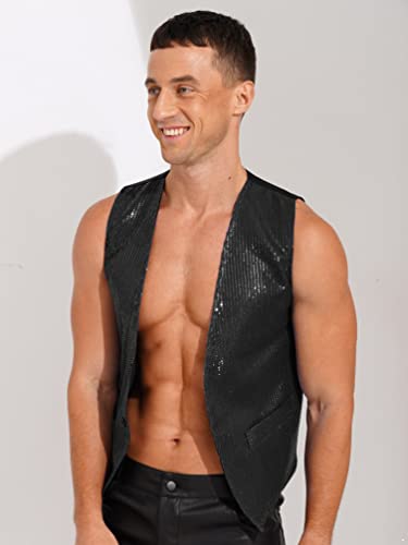 iiniim Mens Sequin Vest Shiny Suit Vest Slim Fit V-Neck Party Dress Stylish Tuxedo Waistcoat Sleeveless Jacket 1