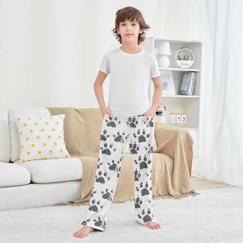 HOT ! Boys' Pants Black Ink Messy Dog Paws Long Bottoms Jogger Pants Elastic Waist Trousers with Pockets S-XL
