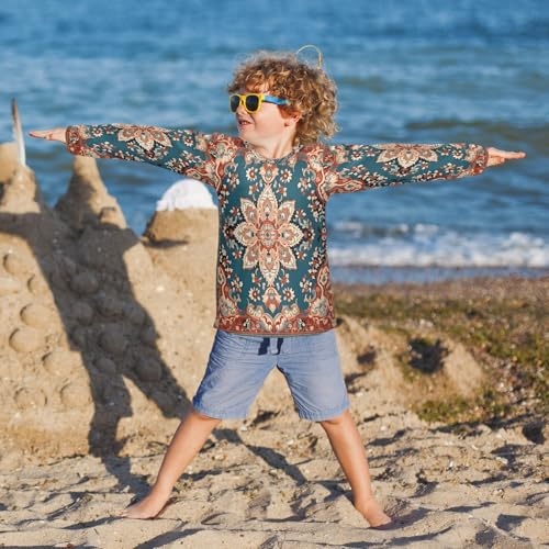 Boys Rash Guard Swim Shirt Long Sleeve UPF+ 50 Sun Shirts Quick Dry Shirt Red Bohemia for Toddler Kids 5