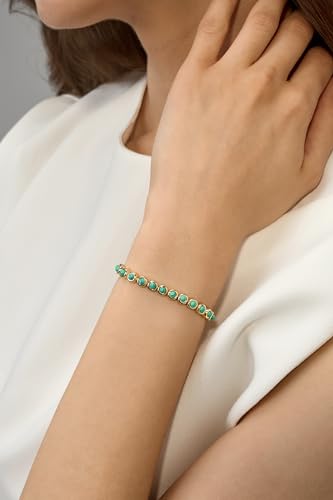 14K Gold Filled Tennis Bracelet For Women, 3MM Turquoise&CZ Gemstone Bezel Tennis Bracelet, Gold Bracelets for Women, 6.15/6.75/7.15 Inch 3