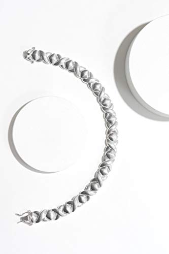 • ELEGANT HUGS & KISSES DESIGN: This MORGAN & PAIGE tennis sterling silver bracelet for women showcases a classic XOXO pattern, beautifully symbolizing love and affection. The polished finish enhances its timeless elegance and sophisticated