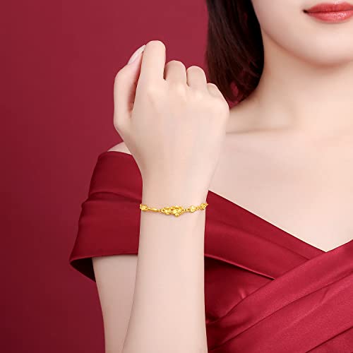 HOT ! 24K Solid Gold Bracelet for Women, Real Pure Gold Jewelry Golden Dainty Flower Gold Bracelet for Men Girlfriend