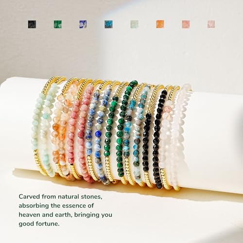 HOT ! Kainier Gold Beaded Bracelets for Women 2Pairs 14K Gold Plated Stretch Bracelet Set Stackable Tarnish Dainty Natural Stone Bead Bracelets Gift