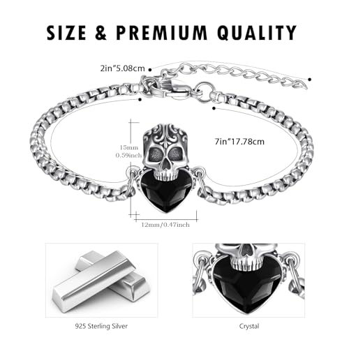 • 【925 Sterling Silver Bracelet】- The skull bracelet is made of 925 sterling silver and black crystal. It is nickel-free, lead-free, cadmium-free and hypoallergenic, comfortable to wear and harmless to sensitive skin. Suitable for long-term wear.