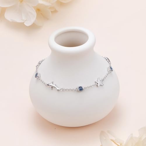 S925 Sterling Silver Shell Starfish Shark Bracelet for Women Summer Beach Sea Ocean Charm Adjustable Link Bracelets Jewelry Gift 5
