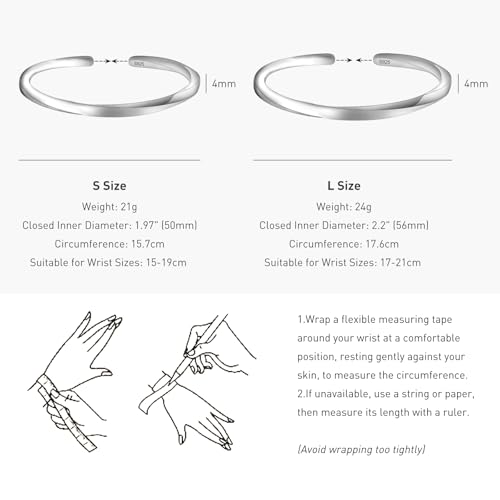 • [SIZE INFO] 4mm open cuff bracelet, S Size: 21g, fits wrists 15-19cm | L Size: 24g, fits wrists 17-21cm. Perfectly designed to fit men and women alike