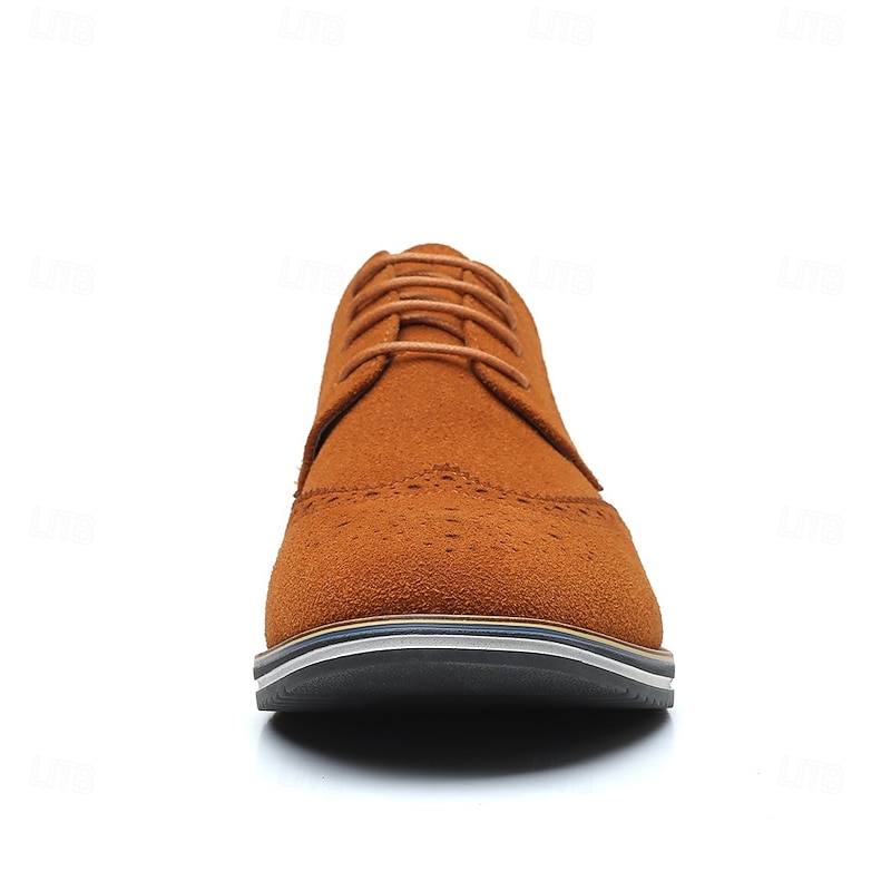 Men's Caramel Brown Faux Leather Oxford Shoes with Brogue Detailing – Smart Casual Lace-Up Shoes for Work, Date & Everyday Wear 33