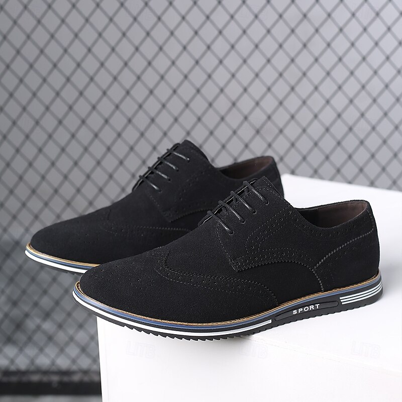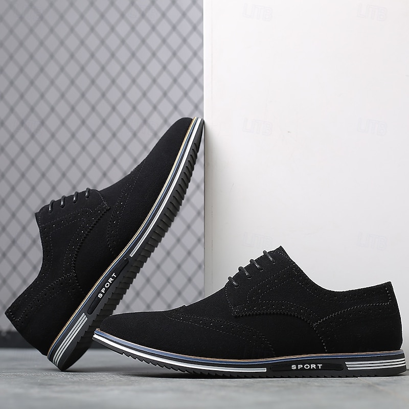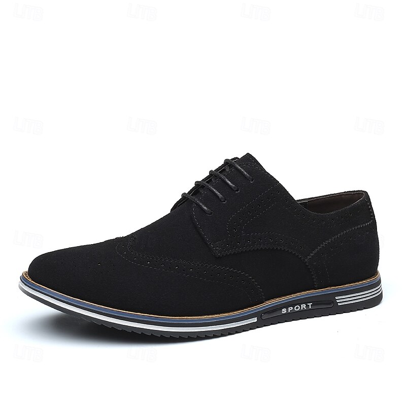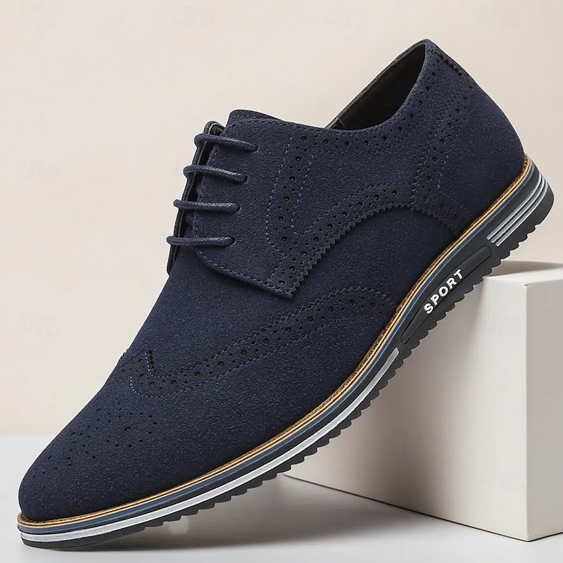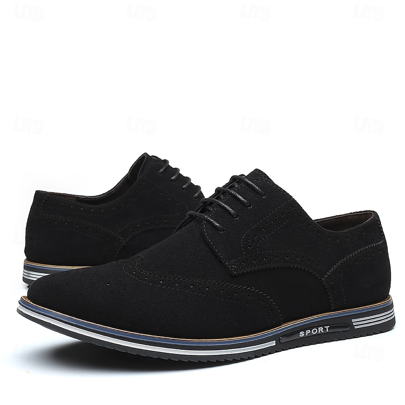HOT ! Men's Caramel Brown Faux Leather Oxford Shoes with Brogue Detailing – Smart Casual Lace-Up Shoes for Work, Date & Everyday Wear