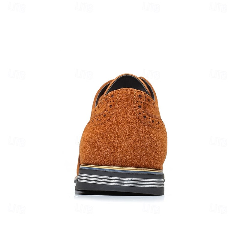 Men's Caramel Brown Faux Leather Oxford Shoes with Brogue Detailing – Smart Casual Lace-Up Shoes for Work, Date & Everyday Wear 32