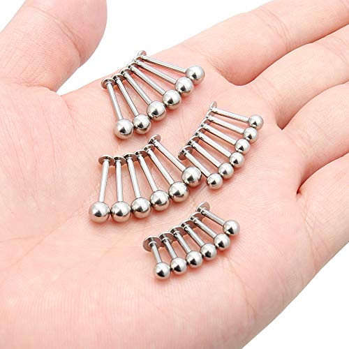• Thickness: 14G(1.6mm); Ball Size: 4mm, 5mm; Wearable Bar Length: 8mm, 10mm, 12mm, 14mm; Color: Silver-tone.