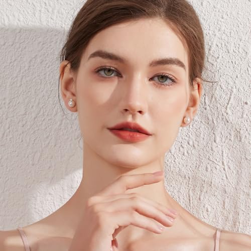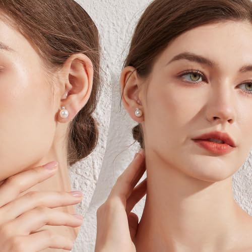 • 💎.【Silver Pearl Earrings 】Elegant Style, Birthstone Pearl Jewelry Culture Pearl Stud Earrings with s, Rhodium Plated 925 Sterling Silver Pearl Earrings for Women. Pearl Size: 8mm. Hypoallergenic and Nickel Free.