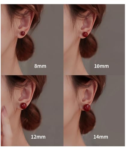 More information about 925 Sterling Silver Post Stud Earrings Red Ball Stud Earrings Set Jewelry for Women 8-12MM