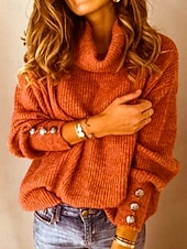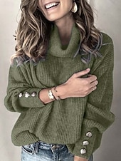 More information about Women's Sweater Casual Soft Pure Color Ribbed Turtleneck Buttons Knitted Long Sleeve Regular Tops Knit Outdoor Daily Weekend White Pink Fall Winter