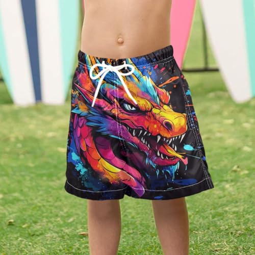 Pigsaly Boys Swim Trunks Colorful Angry Dragon Boys Board Shorts Swimsuit Swimwear Summer Bathing Suit XS 5
