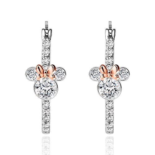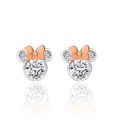 Disney Women's Minnie Mouse Hoop and Stud Earring Set Collection – Silver Plated and 18k Pink Flash-Plated with Cubic Zirconia, Officially Licensed