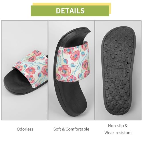 Red Poppies Flowers PVC Slippers Sandals for Women Men Open Toe tender Cushioned Non-Slip Sandal for Indoor Outdoor