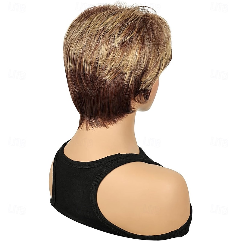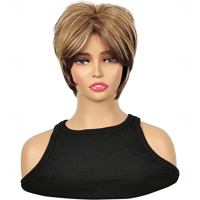 $25.99 - Short Brown Pixie Cut Wig Short Hair Wigs with Bangs Mixed Blonde Highlight Layered Fluffy Synthetic Hair Replacement Wig for Women Halloween Costumes Wigs 2025. Shop for cheap Older Wigs online? Buy at lightinthebox.com on sale today!
