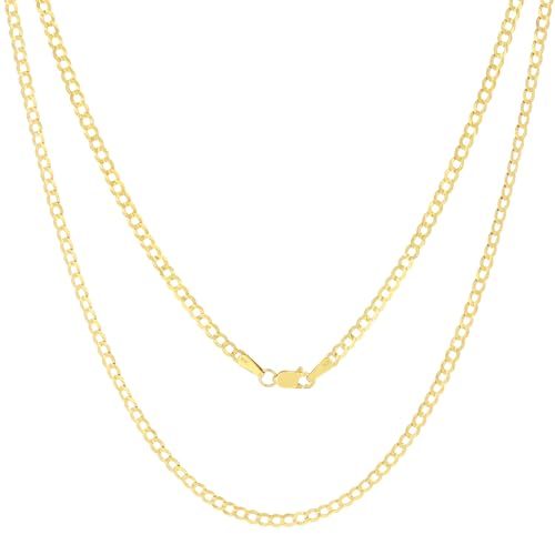 Item display length: 24 inchesItem width: 2.5 millimetersMaterial: Yellow GoldMetal type: Yellow GoldClasp type: LobsterChain type: CurbREAL 10K GOLD: This brand new necklace is Solid 10k Yellow Gold, it is NOT Plated, NOT Filled, NOT Hollow; Professionally tested and STAMPED 10K for gold purity, therefore both highly durable and hypoallergenicCHAIN SPECS: Width: 2.5mm | Length: 24inches | Approximate Weight: 4.7g | Solid Links | The chain fastens with a secure lobster clasp that is easy to put on and take offMADE IN ITALY: This premium chain will not tarnish, fade, or discolor as it is crafted with Pure 10K Gold and Made in Italy with the highest manufacturing standards; Each link is finely hand polished to give the chain that vintage, bright 10k gold shine that will never tug your hair, clothes, or skinVERSATILE: The classic curb chain is known to be both timeless and versatile, perfectly complementing professional, formal, or casual outfits by itself or with your favorite pendant or charm; Suitable for both men and womenPACKAGING: This chain is carefully inspected and packed in our genuine Nuragold gift boxes making it a perfect gift for family and friends for all occassions such as birthdays, anniversaries, christmas, valentines day, or any holiday; Total Satisfaction Guaranteed with our World Class Customer Service Perfect for everyday use. High quality materials and excellent craftsmanship ensure long-lasting durability.