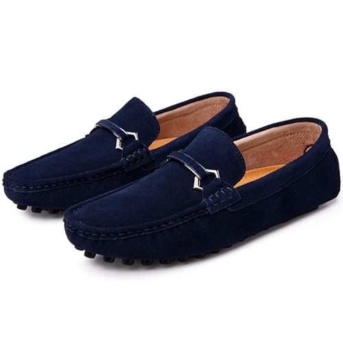 Mens Driving Penny Loafers Suede Moccasins with Metal Buckle Elegant Slip On Casual Boat Shoes 7